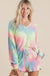 BiBi Tie Dye Knit Top with Leopard Raglan Sleeves